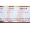 Weiße Bistrogardine in Leinenoptik mit Stickerei und 10 cm breiter Häkelkante